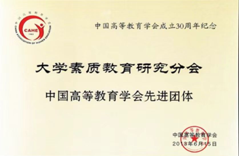 1.2013年,大学素质教育研究分会荣获“中国高等教育学会先进团体”