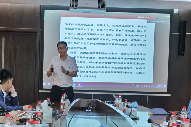 北理工马克思主义学院党委书记刘存福从“科学的信仰和理论”视角为大家讲授了中国共产党为什么“能”的主题党课。他从开展党史学习教育的重要性以及目标要求入手,引经据典,深入分析了马克思主义信仰的科学性和一代代共产党人为了这个信仰前赴后继、敢于牺牲的伟大精神。他结合习近平总书记重要讲话精神,对于马克思主义理论体系进行了简明讲解,特别是围绕以唯物史观指导大学工作实践提出了具体的建议。