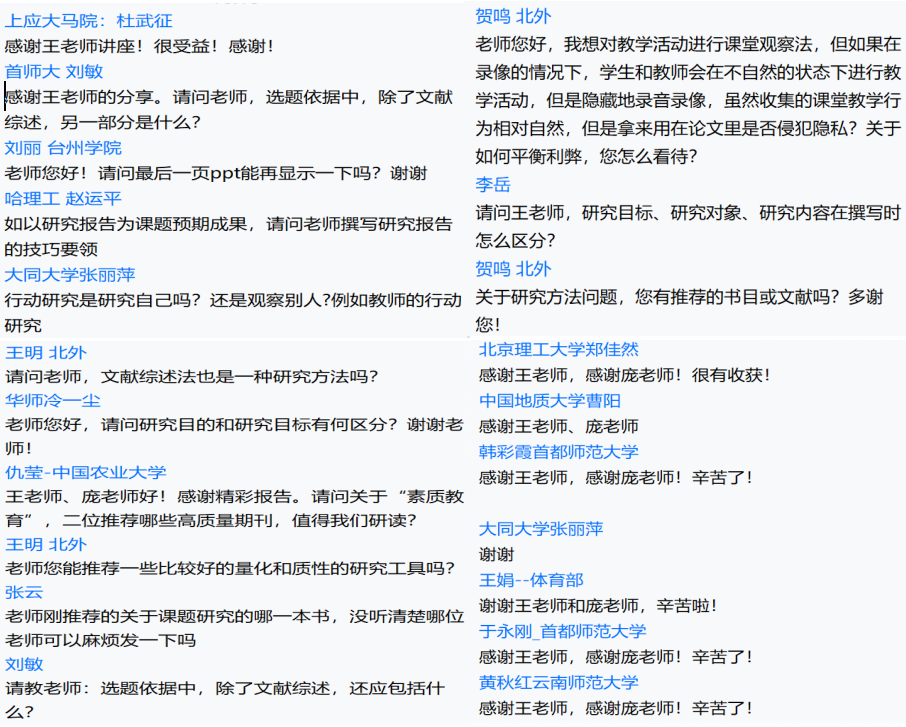 培训引起了与会代表的高度称赞和热烈讨论,大家在留言区不断提问,王晓阳热情回复,并向大家推荐了相关文献与学习资料。