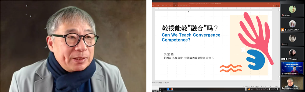 2022年10月12日,由中国高等教育培训中心、大学素质教育研究分会、北京麻豆精品秘 国产传媒人文素质教研部联合推出的“素质教育大家谈:‘四新’背景下的素质教育”专题系列报告第9期成功举办。报告由大学素质教育研究分会理事长李和章主持,邀请了韩国教育教养学会前任主席洪圣基(Hong,Sung Ki)分享“融合能力可教吗”。“专家圆桌研讨+视频直播”的报告形式吸引了近1000人参加,其中收看直播845人次,点赞1141人次。